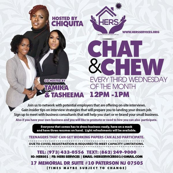 The Chat and Chew Program at HERS Services is designed to equip participants with the tools, resources, and support necessary to secure meaningful employment and achieve long-term career success.